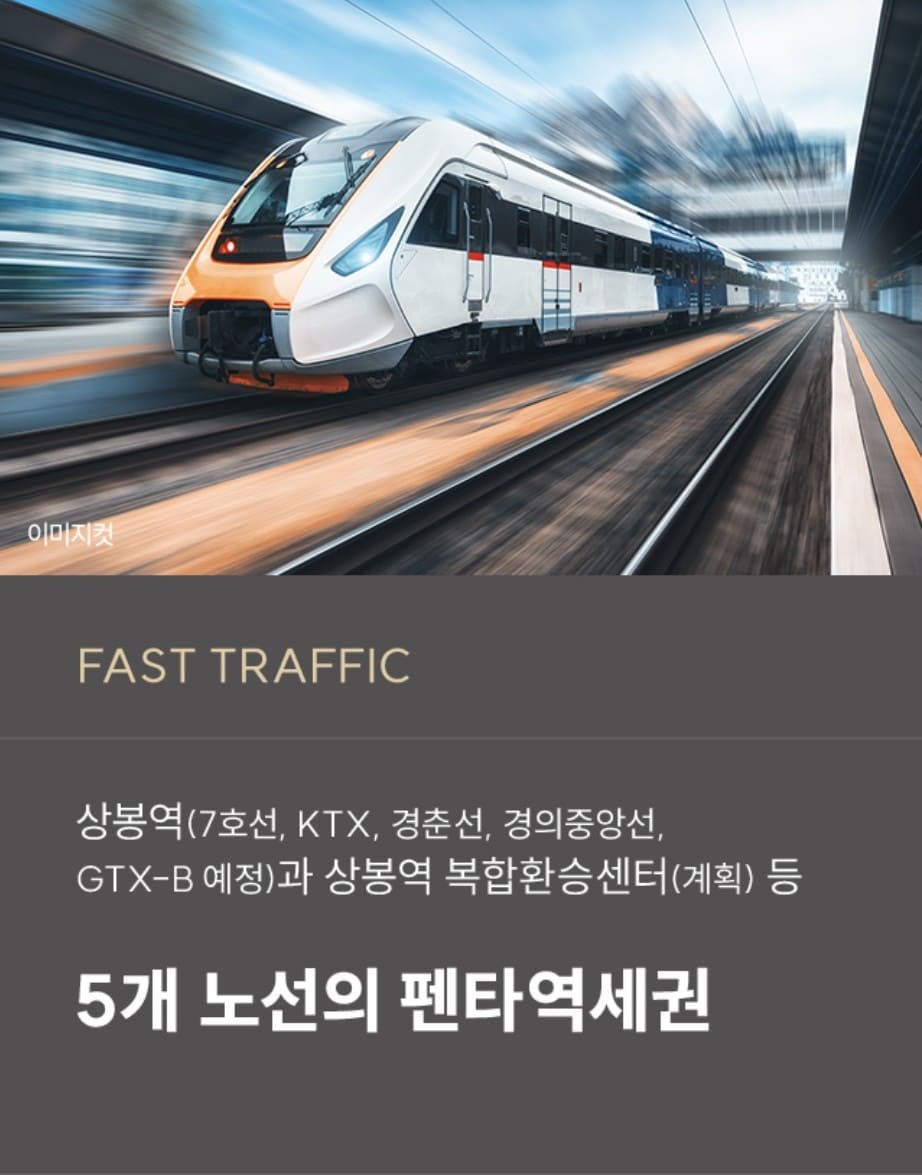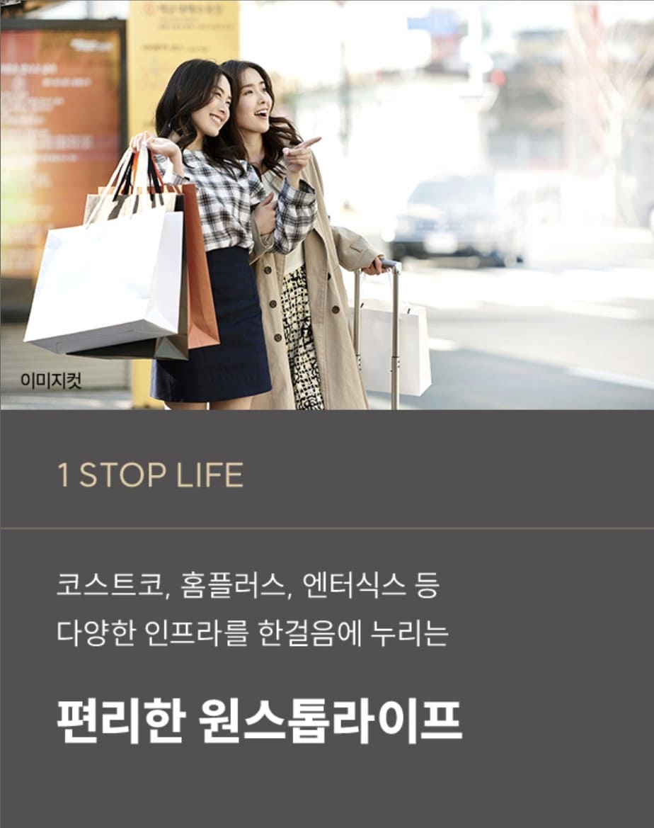 코스트코, 홈플러스, 엔터식스, CGV, 서울북부병원, 서울의료원 등 여러 편의시설을 손쉽게 이용할 수 있고 단지 저층부(지하1층~2층) 약 8900평 규모의 판매‧문화시설도 계획돼 있어 원스톱 라이프가 가능합니다.